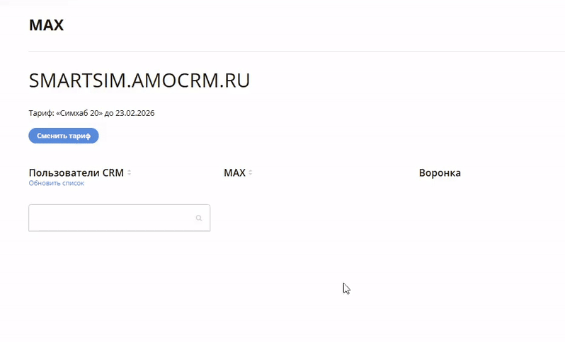 Авторизуемся в личном кабинете Симхаб. В колонке «Пользователи CRM» в выпадающем списке выбираем нужного пользователя → «Подключить».